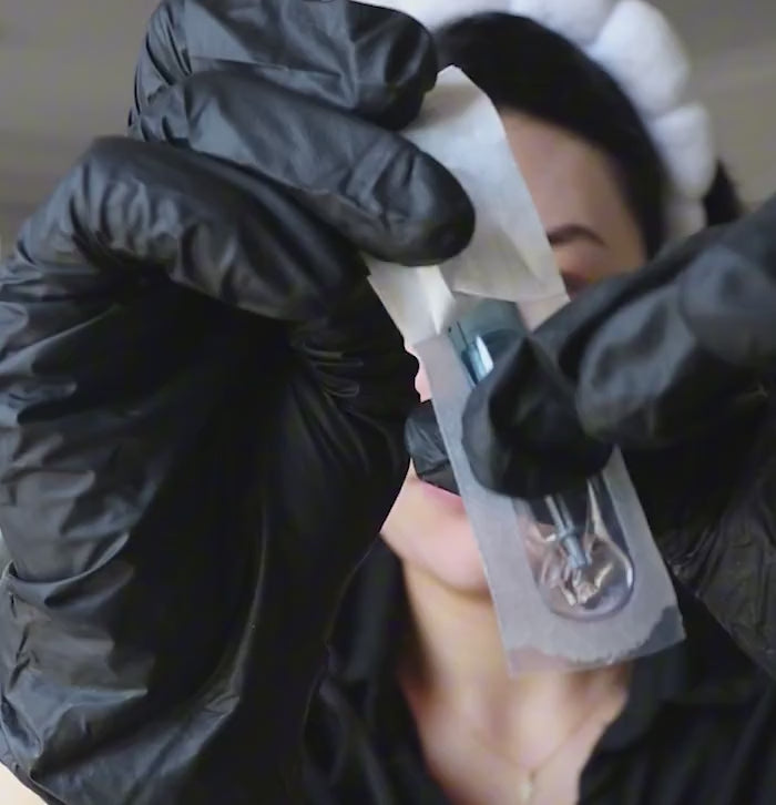 Each Dr Pen device has a cartridge with tiny needles attached. When you turn your device on and place it the area you wish to treat, the cartridge needles will pulsate and glide along the skin to penetrate the upper layers of your skin to create deliberate trauma and micro-wounds. These wounds trigger a healing response from the body, which responds by producing collagen and elastin fibers. Over time, the skin becomes rejuvenated and reduces the appearance of fine lines, scarring, hyperpigmentation, loose skin and will brighten and improve your overall texture and tone. Read more about how microneedling works here.