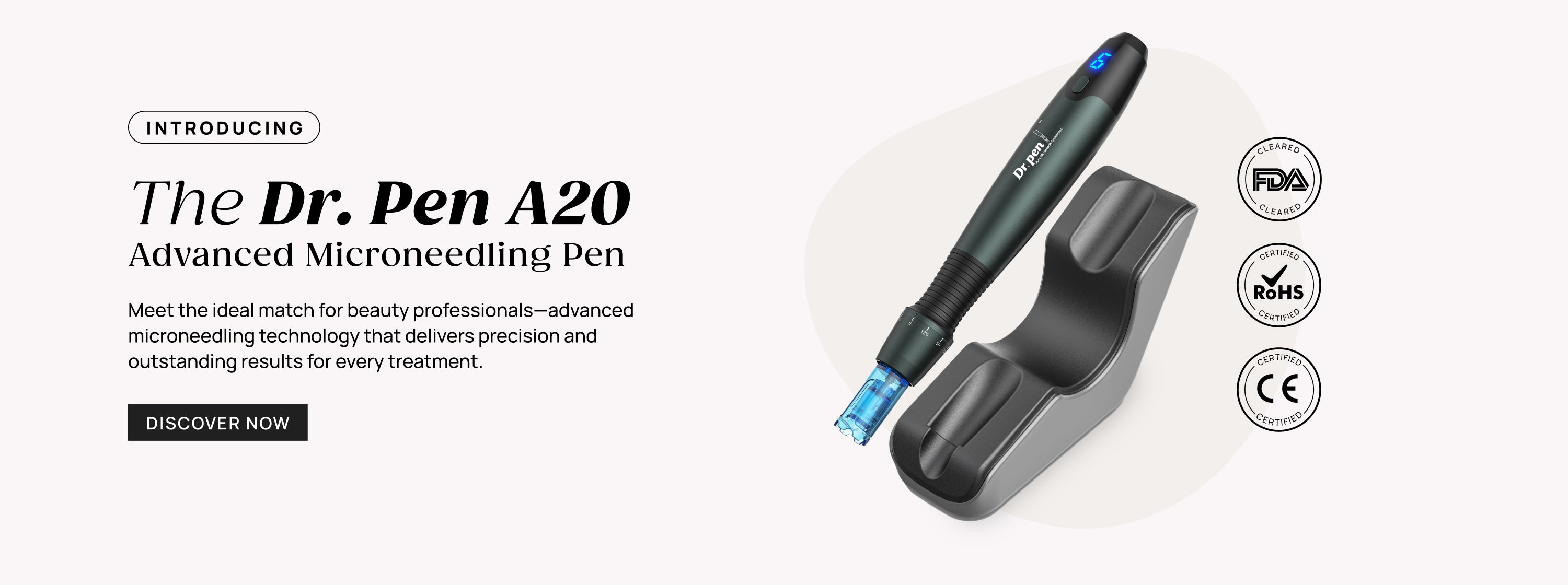 Each Dr Pen device has a cartridge with tiny needles attached. When you turn your device on and place it the area you wish to treat, the cartridge needles will pulsate and glide along the skin to penetrate the upper layers of your skin to create deliberate trauma and micro-wounds. These wounds trigger a healing response from the body, which responds by producing collagen and elastin fibers. Over time, the skin becomes rejuvenated and reduces the appearance of fine lines, scarring, hyperpigmentation, loose skin and will brighten and improve your overall texture and tone. Read more about how microneedling works here.