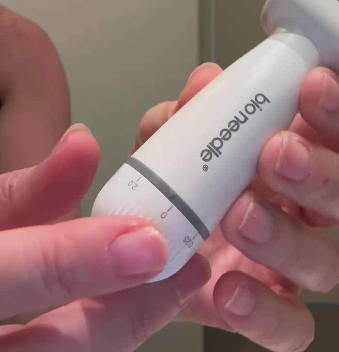 Applying a numbing cream pre-needling is advisable for lengths longer than 1mm. Applying a serum such as hyaluronic acid will also help lubricate your skin and may alleviate some discomfort during the microneedling process. Using a device with a finer needle gauge (such as the M8 and A7), as well as a higher speed level, may also alleviate some discomfort.